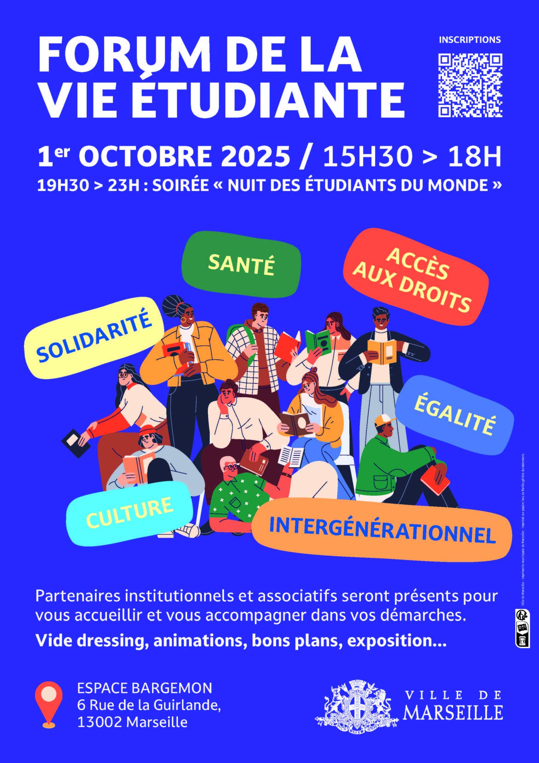 Venez participer au Forum de la Vie Étudiante, mercredi 1ᵉʳ octobre de 15h30 à 18h, à l’Espace Bargemon.