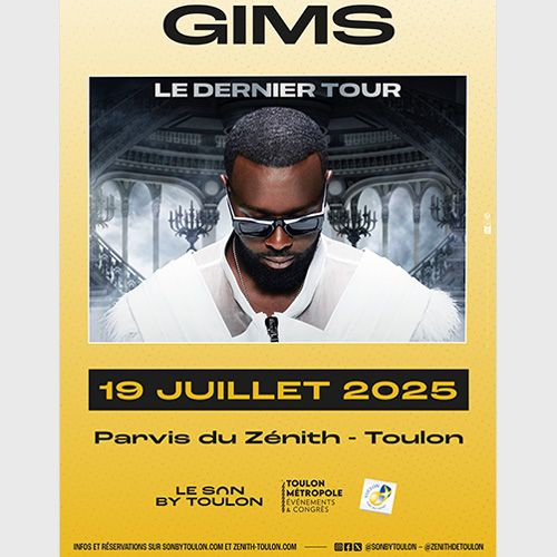 GIMS, le célèbre chanteur qui a marqué la scène musicale française et qui a collaboré avec des artistes de renom à travers le monde est de retour avec une nouvelle tournée : « Le Dernier Tour ». Plus qu’une tournée, c’est le réel aboutissement de la carrière musicale exceptionnelle de GIMS et d’une célébration de l’impact que cet artiste a eu sur la scène musicale française. Cette soirée exceptionnelle sur le Parvis du Zénith de Toulon promet une réelle expérience et un voyage dans le temps à travers ses plus grands tubes !