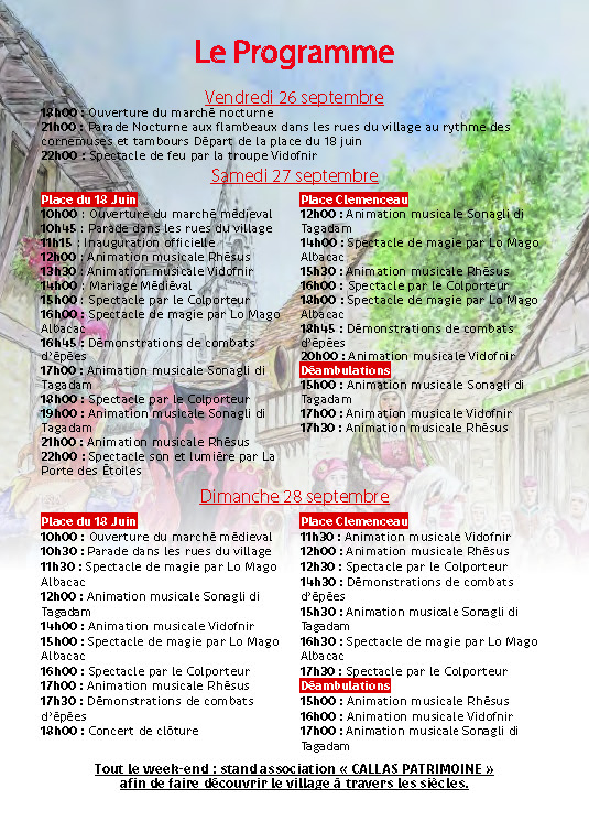 Du 26 au 28 septembre, Callas se transforme en village médiévale, un voyage à l’époque des chevaliers.